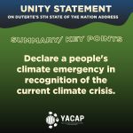 We, Youth Advocates for Climate Action Philippines and other environmental advocates, express our great discontent with the inadequacy of the State of the Nation report.