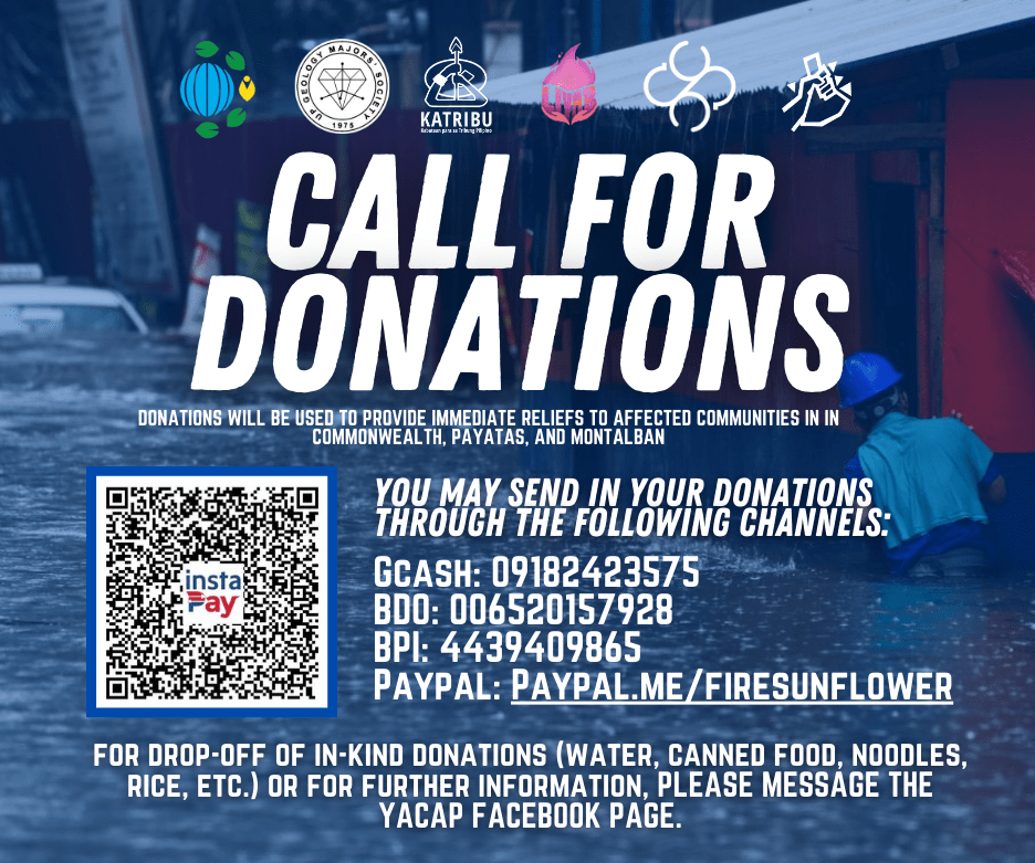 URGENT CALL FOR DONATIONS FOR TYPHOON-AFFECTED COMMUNITIES Several areas in Luzon, including Metro Manila, have experienced severe flooding due to Typhoon Carina (Gaemi) combined with the intensified southwest monsoon, known locally as habagat. Metro Manila is now UNDER A STATE OF CALAMITY. Water levels in La Mesa Dam have surged, nearing the spill level due toContinue reading “Donate to affected communities of Typhoon Carina”